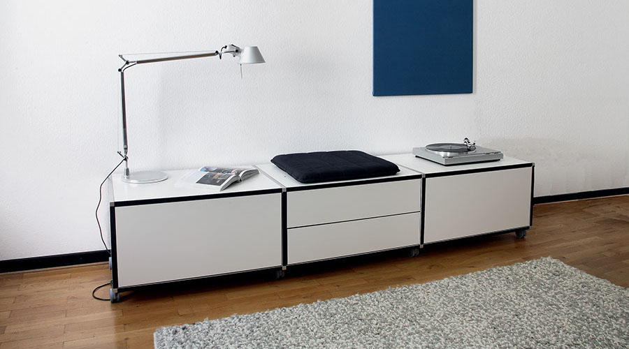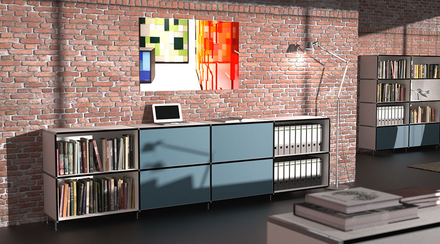 Seine Individualität und Anpassungsfähigkeit an alle Lebensbereiche macht themis® universell einsetzbar, sei es als solitäres Wohnmöbel oder als modular kombiniertes und jederzeit veränderbares Büromöbel.
